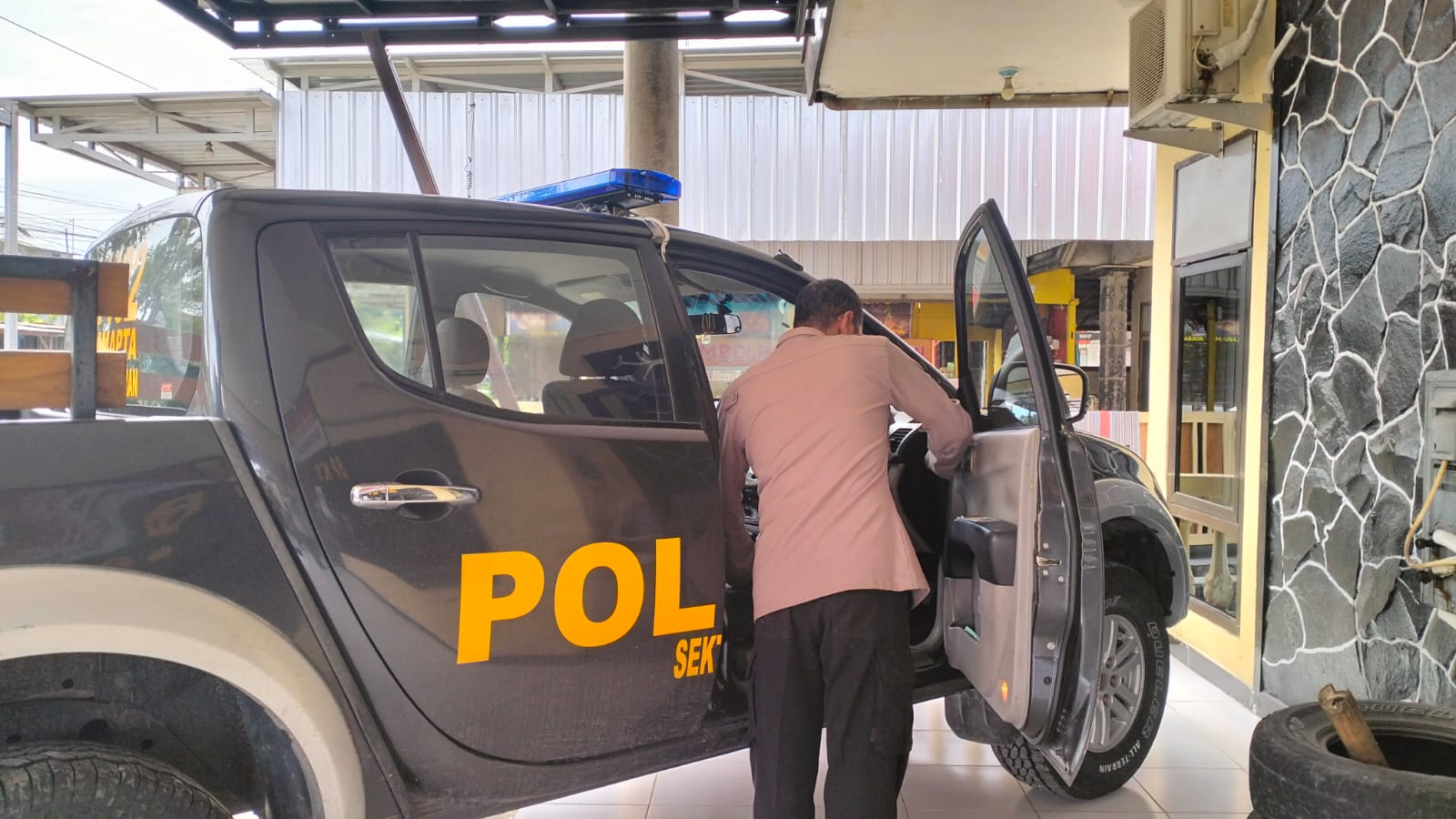 Armada Patroli: Melakukan pencucian dan pengecekan mesin mobil patroli guna memastikan mobilitas petugas di lapangan tidak menemui kendala teknis.