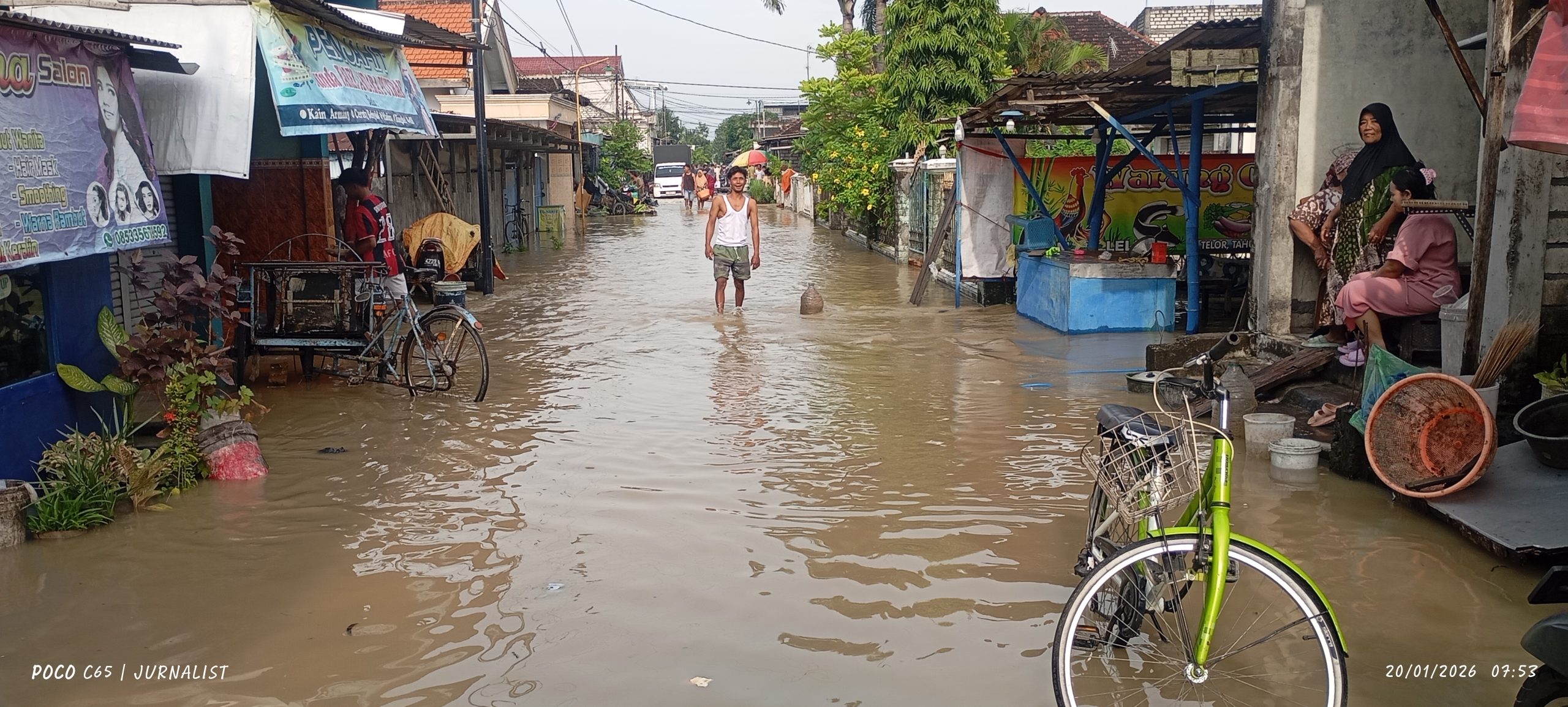 Informasiindo.com//LAMONGAN – Hujan deras yang mengguyur wilayah Kecamatan Babat, Kabupaten Lamongan pada sore kemarin (20 Januari 2026) menyebabkan Sungai Kali Moropelang meluap, mengakibatkan pemukiman warga Desa Moropelang tergenang air. Kondisi ini diperparah karena pembuangan rawa desa setempat tidak mampu menampung debit air yang meningkat tajam akibat curah hujan tinggi.