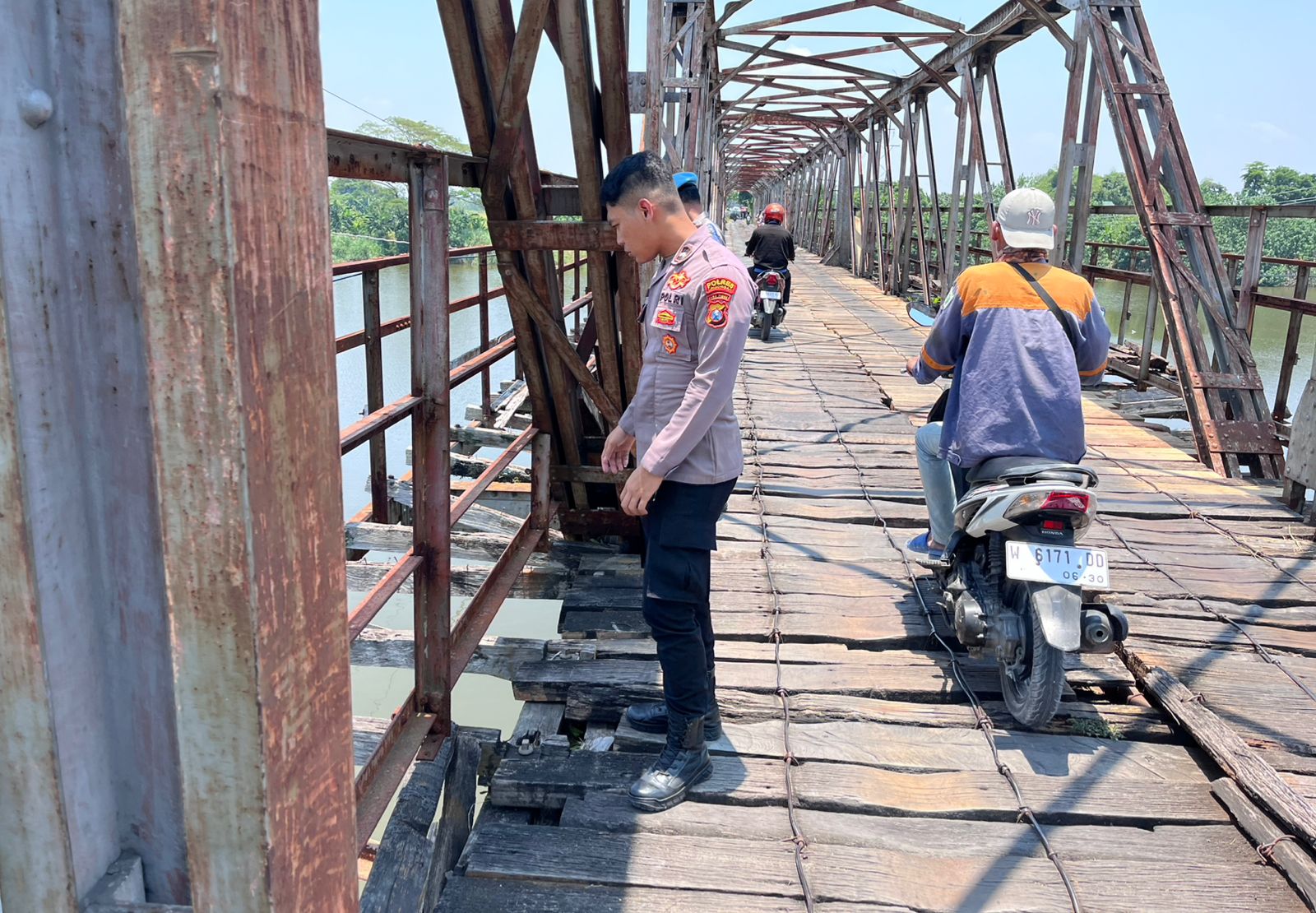 Patroli ini melibatkan Aipda Suwono dan Bripda Nasurudin yang bertugas memantau kondisi sungai secara langsung dan mengecek Tinggi Muka Air (TMA). Hasil pengecekan menunjukkan bahwa TMA Bengawan Solo berada pada angka 6.40 Mdpl dan dalam kondisi stabil.