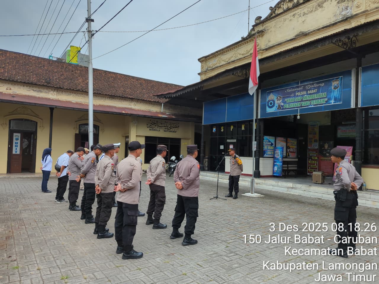 KapInformasiindo.com//LAMONGAN – Polsek Babat, Polres Lamongan, melaksanakan apel pagi rutin di Mako Polsek Babat pada hari Rabu, 3 Desember 2025, pukul 08.00 WIB. Apel pagi ini dipimpin langsung oleh Kapolsek Babat, Kompol Chakim Amrullah, S.H., M.H., dan diikuti oleh 15 personel Polri.