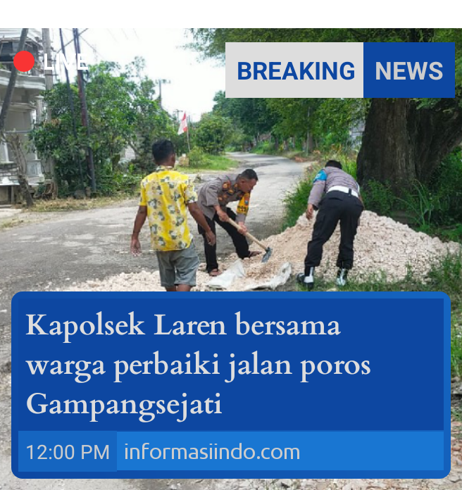 Selain melaksanakan perbaikan jalan, Kapolsek Laren juga memberikan imbauan kepada masyarakat agar selalu berhati-hati saat melintas di jalan raya, mematuhi peraturan lalu lintas, serta bersama-sama menjaga dan merawat fasilitas umum demi kepentingan bersama.