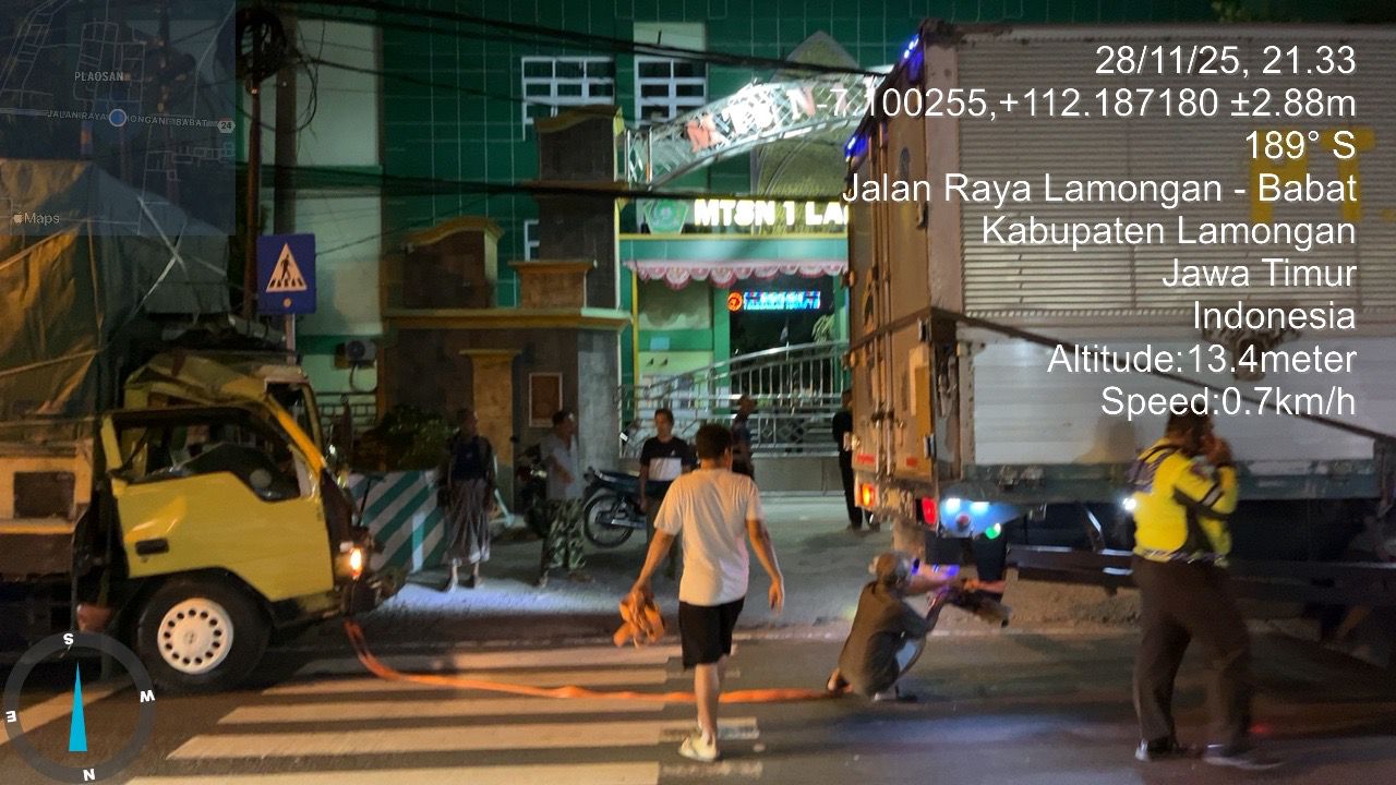 Informasiindo.com//LAMONGAN – Kecelakaan lalu lintas beruntun melibatkan tiga truk terjadi di Jalan Raya Lamongan – Babat, tepatnya di Desa Plaosan, Kecamatan Babat, Kabupaten Lamongan, pada Jumat malam, 28 November 2025, sekitar pukul 21.10 WIB. Insiden ini mengakibatkan satu korban luka dan kerugian materiil diperkirakan mencapai 10 juta rupiah.