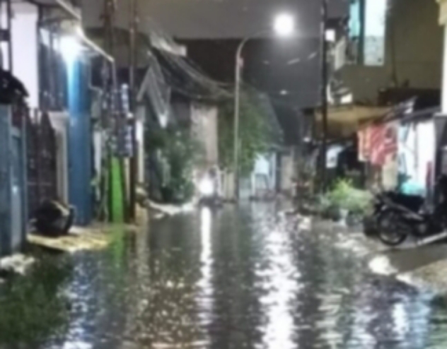 Hal ini disebabkan diduga karena kondisi saluran yang terletak di sisi kiri dan kanan jalan terlalu kecil, kurang memadai yang tidak bisa menampung derasnya air hujan, sehingga meluber di jalan dan rumah warga.