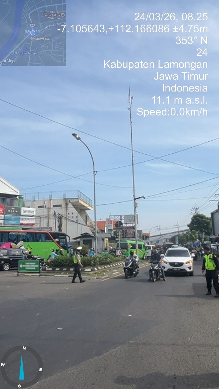 Kegiatan yang dimulai sejak pukul 08.30 WIB ini difokuskan di area Bundaran Tugu Wingko, Pasar Babat, yang merupakan urat nadi transportasi penghubung antar kabupaten. Pengaturan ini merupakan bagian dari rangkaian Ops Ketupat Semeru 2026 guna menjamin Keamanan, Keselamatan, Ketertiban, dan Kelancaran Lalu Lintas (Kamseltibcarlantas).