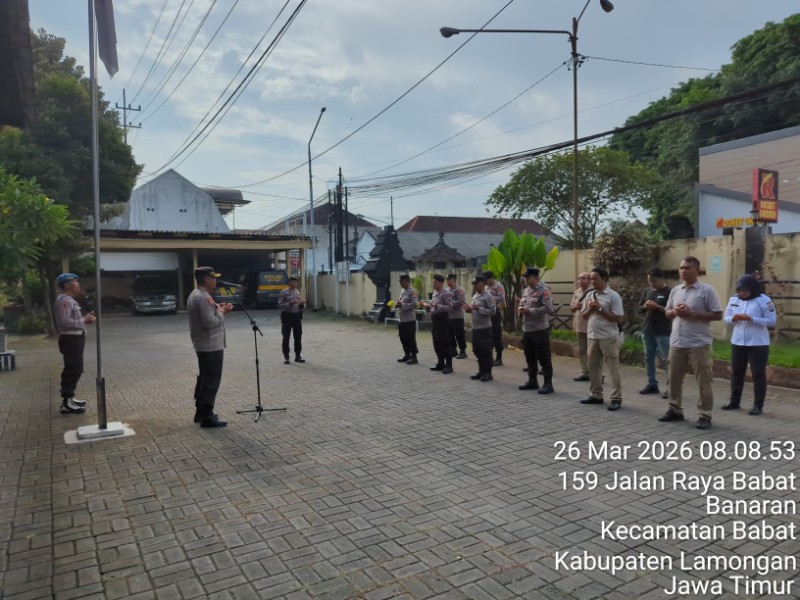 Informasiindo.com//LAMONGAN – Kedisiplinan dan kesiapsiagaan personel menjadi fondasi utama Polsek Babat dalam memberikan pelayanan terbaik kepada masyarakat. Pada Kamis (26/03/2026) pagi, jajaran Polsek Babat melaksanakan Apel Pagi rutin yang dipimpin langsung oleh Kapolsek Babat, Kompol Chakim Amrullah, S.H., M.H.