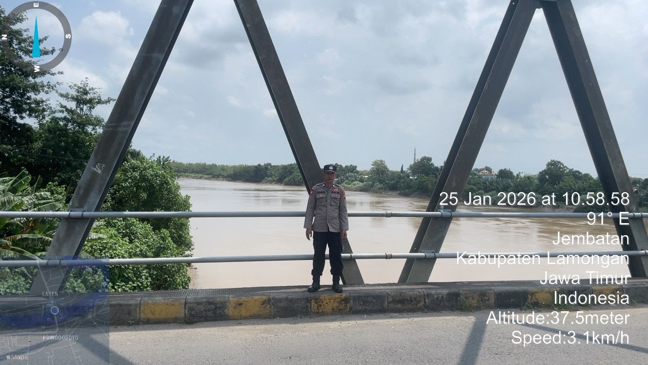 Hasil pantauan menunjukkan bahwa ketinggian permukaan air Bengawan Solo pada titik pengamatan tercatat sebesar 3,5 meter. Selain itu, diperoleh informasi bahwa tinggi muka air sungai di wilayah hukum Polsek Laren bersifat fluktuatif dan saat ini mengalami penurunan.