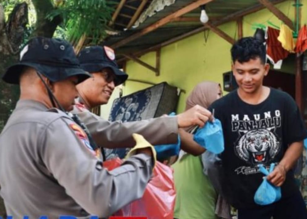 Selain kerja bakti, Polres Jember Polda Jatim juga menyalurkan nasi bungkus kepada warga terdampak.
