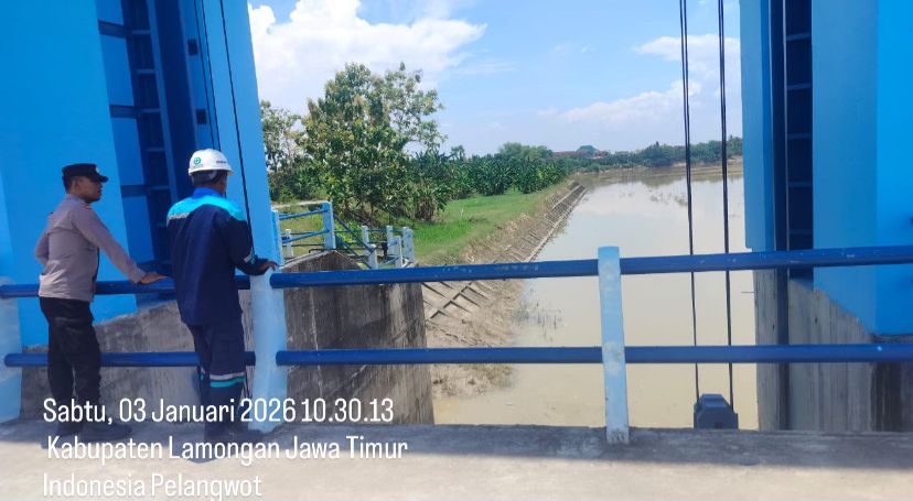 Informasiindo.com//LAMONGAN – Polsek Laren melakukan patroli pengecekan dan monitoring ketinggian permukaan air Sungai Bengawan Solo di wilayah hukumnya, pada hari Sabtu (03/01/2026) pukul 10.30 WIB bertempat di Floodway Plangwot.