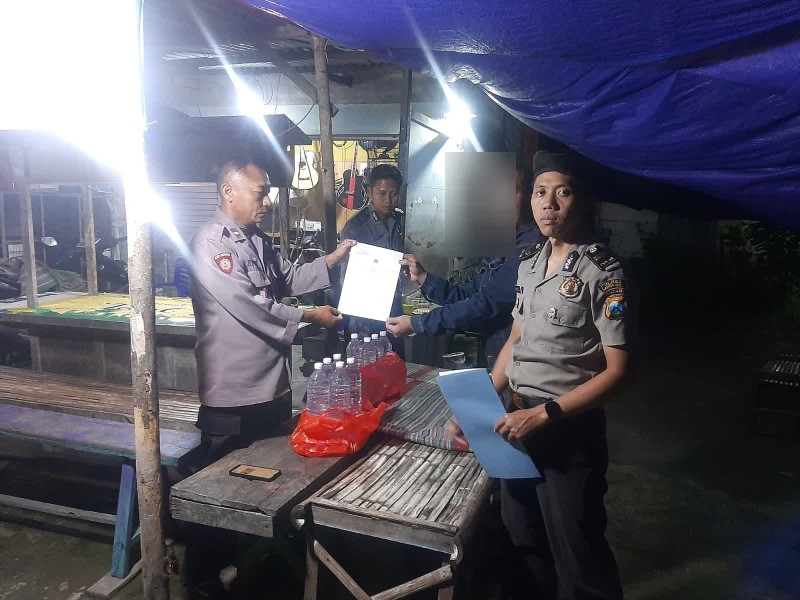 Kegiatan yang dilakukan sekitar pukul 21.30 WIB di warung berlokasi Jalan Stasiun Kelurahan Babat, Kecamatan Babat, merupakan tindak lanjut dari laporan warga mengenai aktivitas penjualan miras ilegal. Penjual yang diidentifikasi Berinisial sebagai D,A,S (57 tahun, warga Desa Kampungbaru, Kecamatan Kepung, Kabupaten Kediri) ditemukan menjual Arak yang dibungkus dalam botol kemasan Aqua.