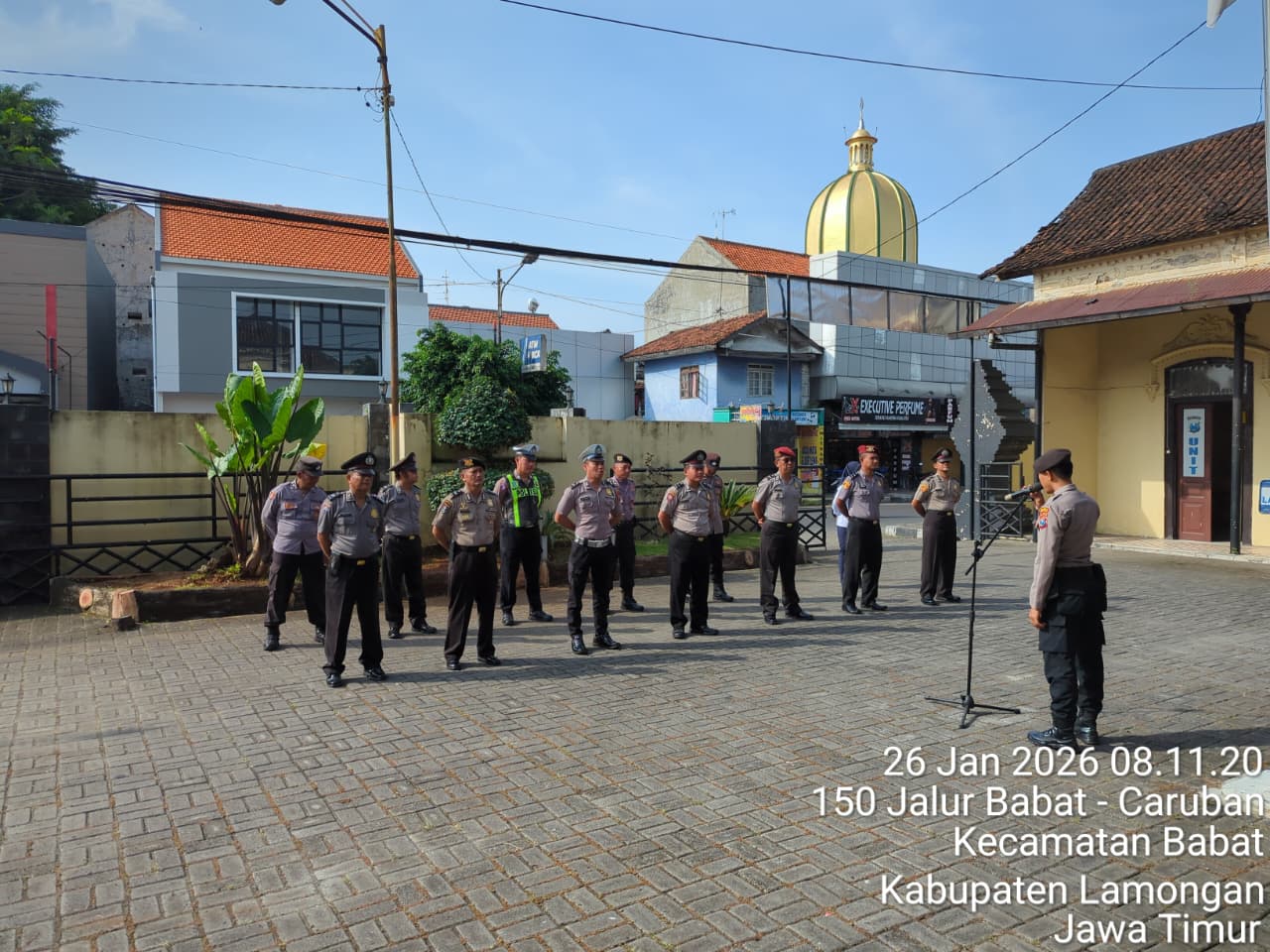 Informasiindo.com//LAMONGAN – Polsek Babat melaksanakan apel pagi rutin pada hari Senin di Markas Polsek Babat, yang secara faktual berlangsung pada tanggal 26 Januari 2026 sekitar pukul 08.00 WIB hingga selesai (catatan: terdapat kesalahan penulisan tahun pada laporan awal sebagai 2025).