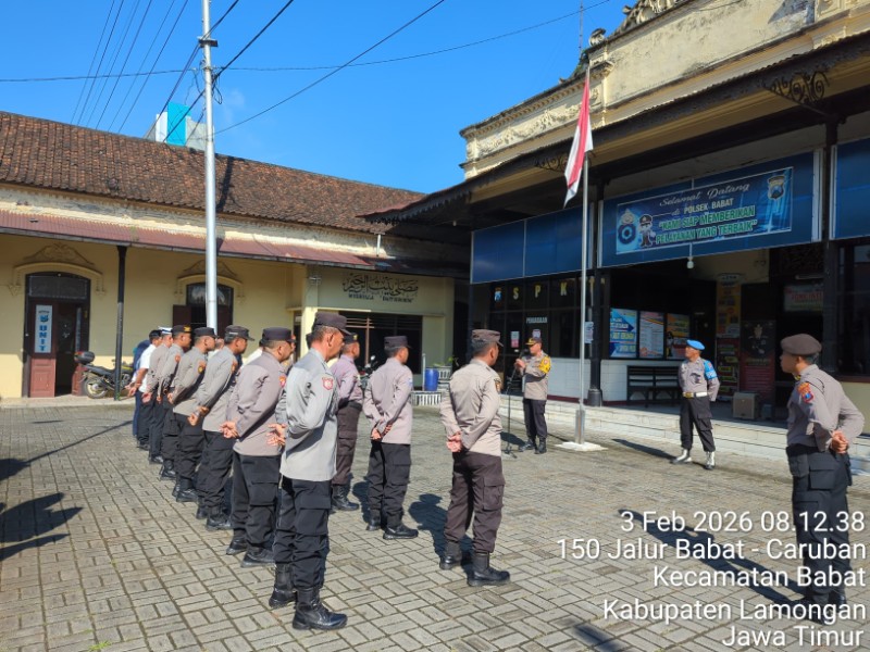 Informasiindo.com//LAMONGAN – Polsek Babat menggelar apel pagi rutin pada hari Rabu (03/02/2026) sekitar pukul 08.00 WIB di Markas Komando (Mako) Polsek Babat. Kegiatan yang diikuti oleh 19 personel Polri ini dipimpin langsung oleh Kapolsek Babat, Kompol Chakim Amrullah, S.H, M.H, dan berjalan secara lancar serta kondusif.