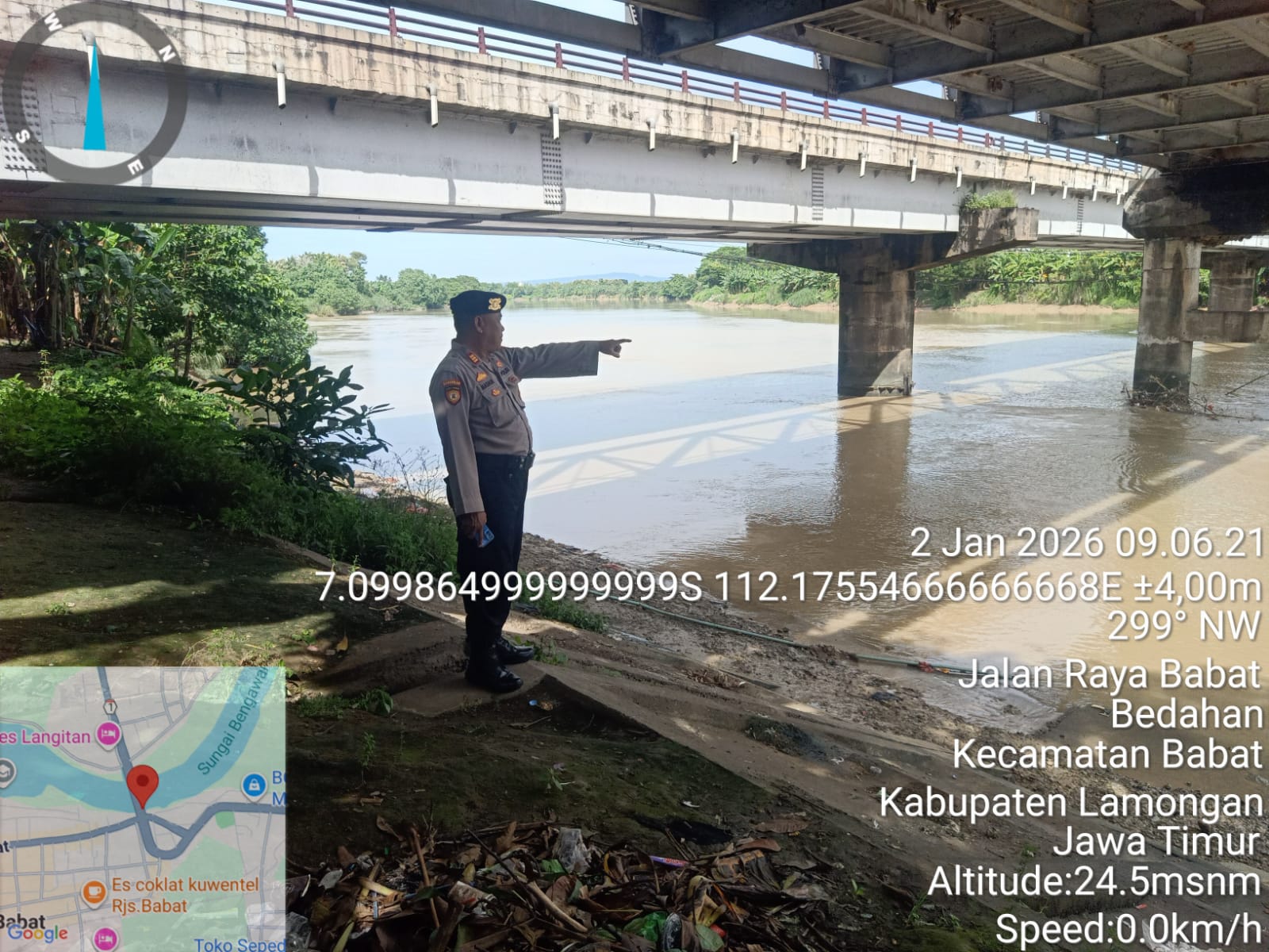 Informasiindo.com//LAMONGAN – Polsek Babat, Polres Lamongan, telah melaksanakan patroli antisipasi banjir serta pengecekan Tinggi Muka Air (TMA) di bantaran Sungai Bengawan Solo wilayah Kecamatan Babat. Kegiatan ini berlangsung pada hari Jumat (02/01/2026) mulai pukul 09.00 WIB hingga selesai.