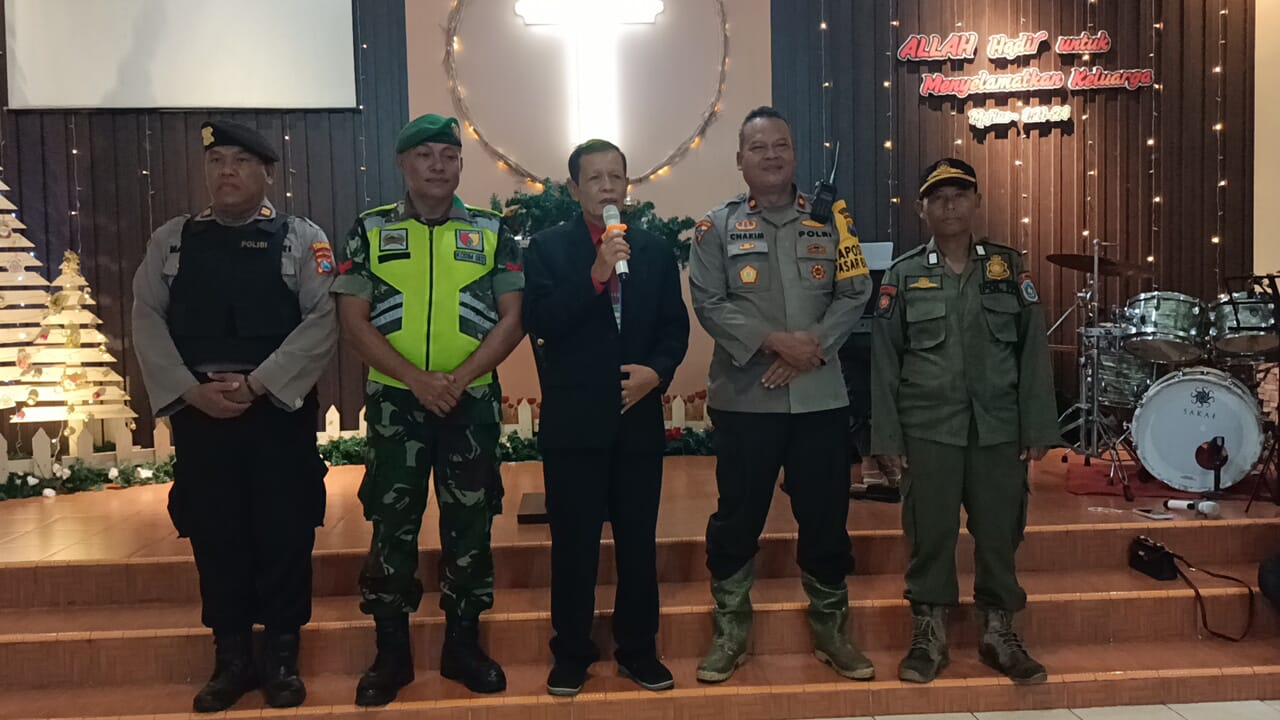 Informasiindo.com//LAMONGAN – Polsek Babat bersama elemen keamanan lain telah melaksanakan pengamanan ibadah Natal 2025 di Rumah Ibadah Pantekosta Pusat Surabaya (GPPS) Jl. Sultan Agung No. 3, Kelurahan Banaran, Kecamatan Babat, Minggu (20/12/2025) pukul 16.00 s/d 17.30 WIB. Kegiatan yang dipimpin Pdt. Aser Sukardi dihadiri oleh sekitar 100 jemaat.