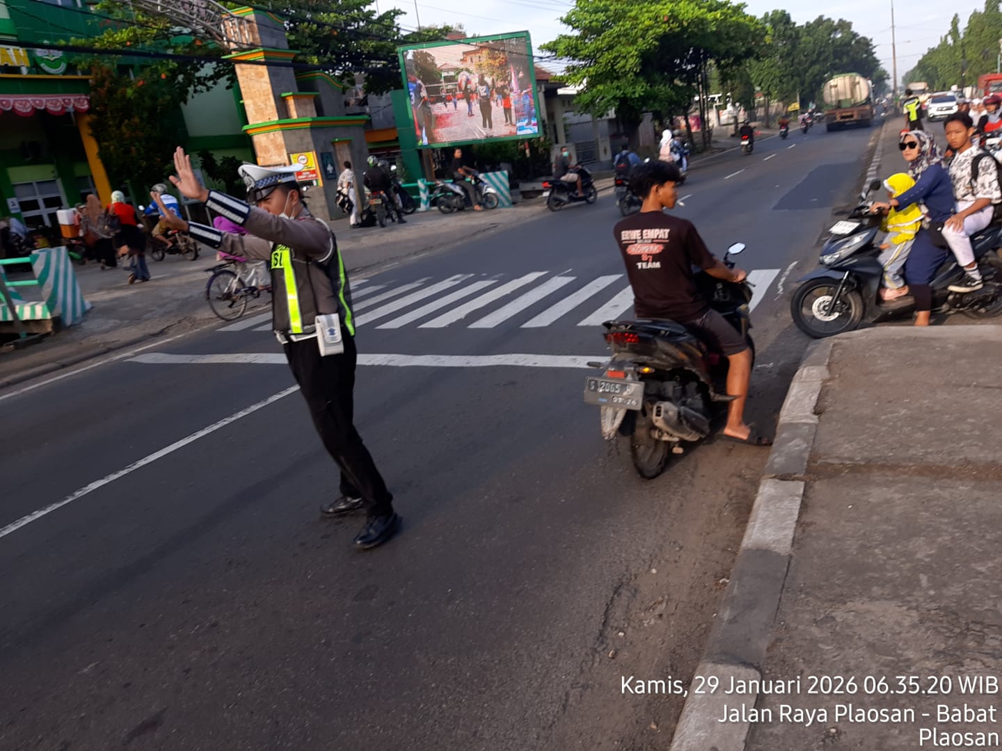 Polsek Babat Laksanakan Pengawasan Lalu Lintas Pagi, Arus di Sekitar MTsN 1 Lamongan Berjalan Lancar