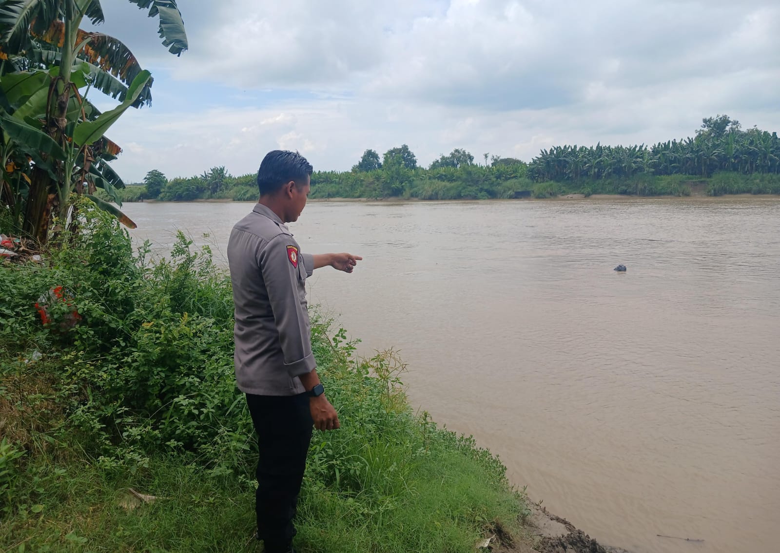 Polsek Babat Lakukan Patroli Antisipasi Banjir, TMA Sungai Bengawan Solo Stabil di 5,40 Mdpl