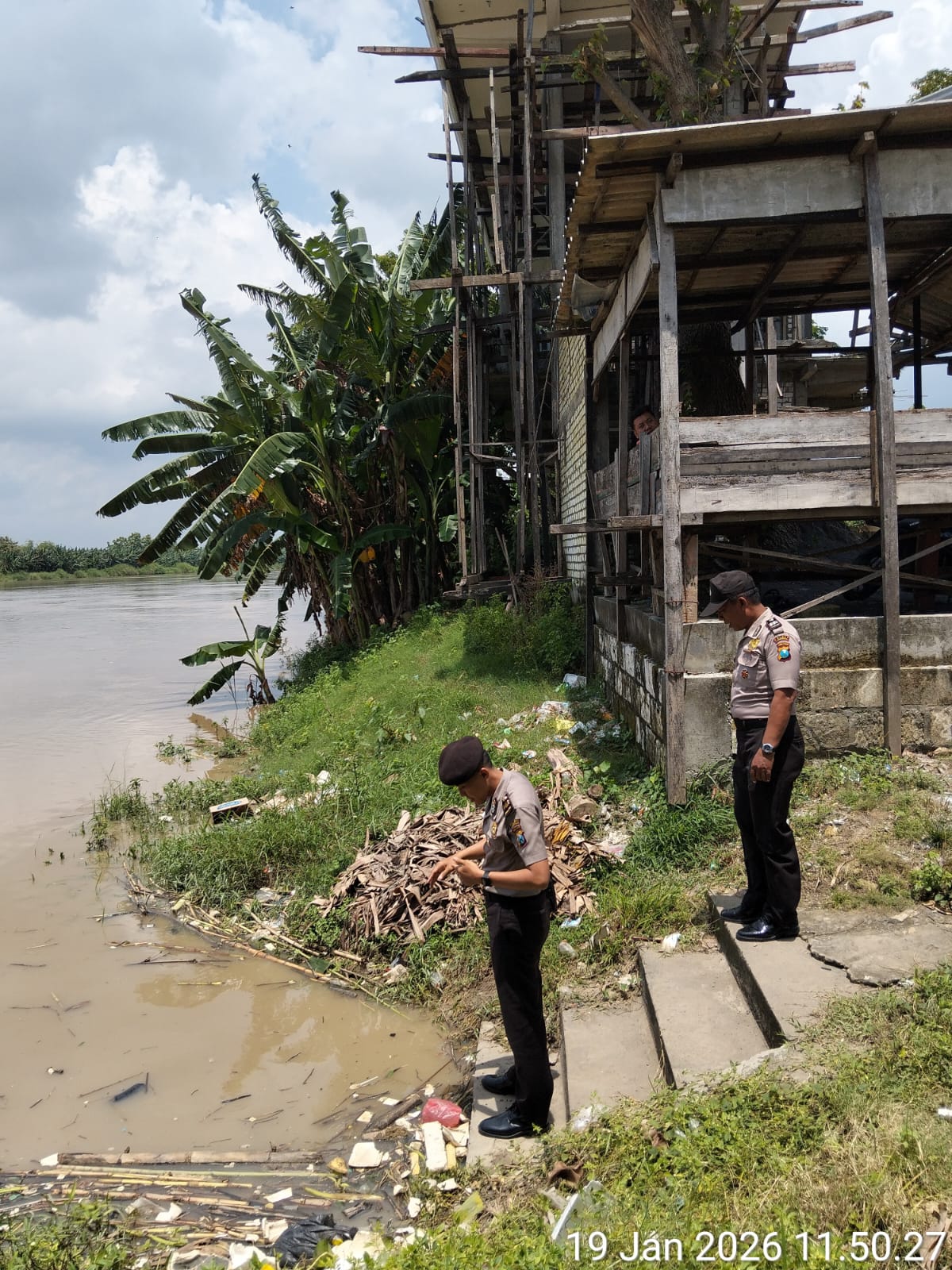 Informasiindo.com//LAMONGAN – Polsek Babat, Polres Lamongan, melakukan patroli antisipasi banjir serta pengecekan Tinggi Muka Air (TMA) Sungai Bengawan Solo pada hari Senin (19/1) pukul 11.50 WIB di bantaran sungai wilayah Kecamatan Babat.