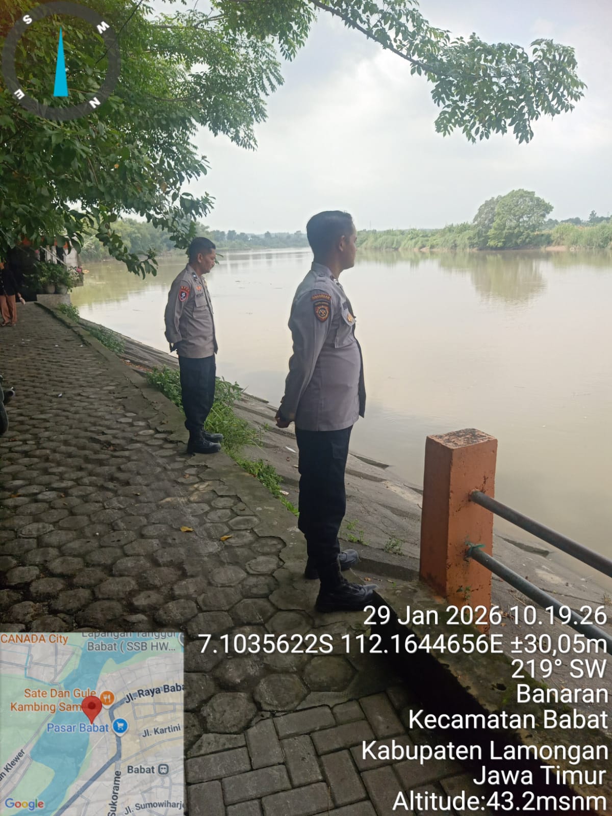 Informasiindo.com//LAMONGAN – Seiring dengan memasuki musim yang berpotensi terjadi cuaca ekstrem, Polsek Babat Polres Lamongan gencar melakukan upaya antisipasi potensi banjir. Pada hari Kamis (29/1) sekitar pukul 10.10 WIB, personel yang terdiri dari Aipda Mukhit, Aipda Huda, dan Briptu Dery melakukan patroli di bantaran Sungai Bengawan Solo serta memeriksa Tinggi Muka Air (TMA).