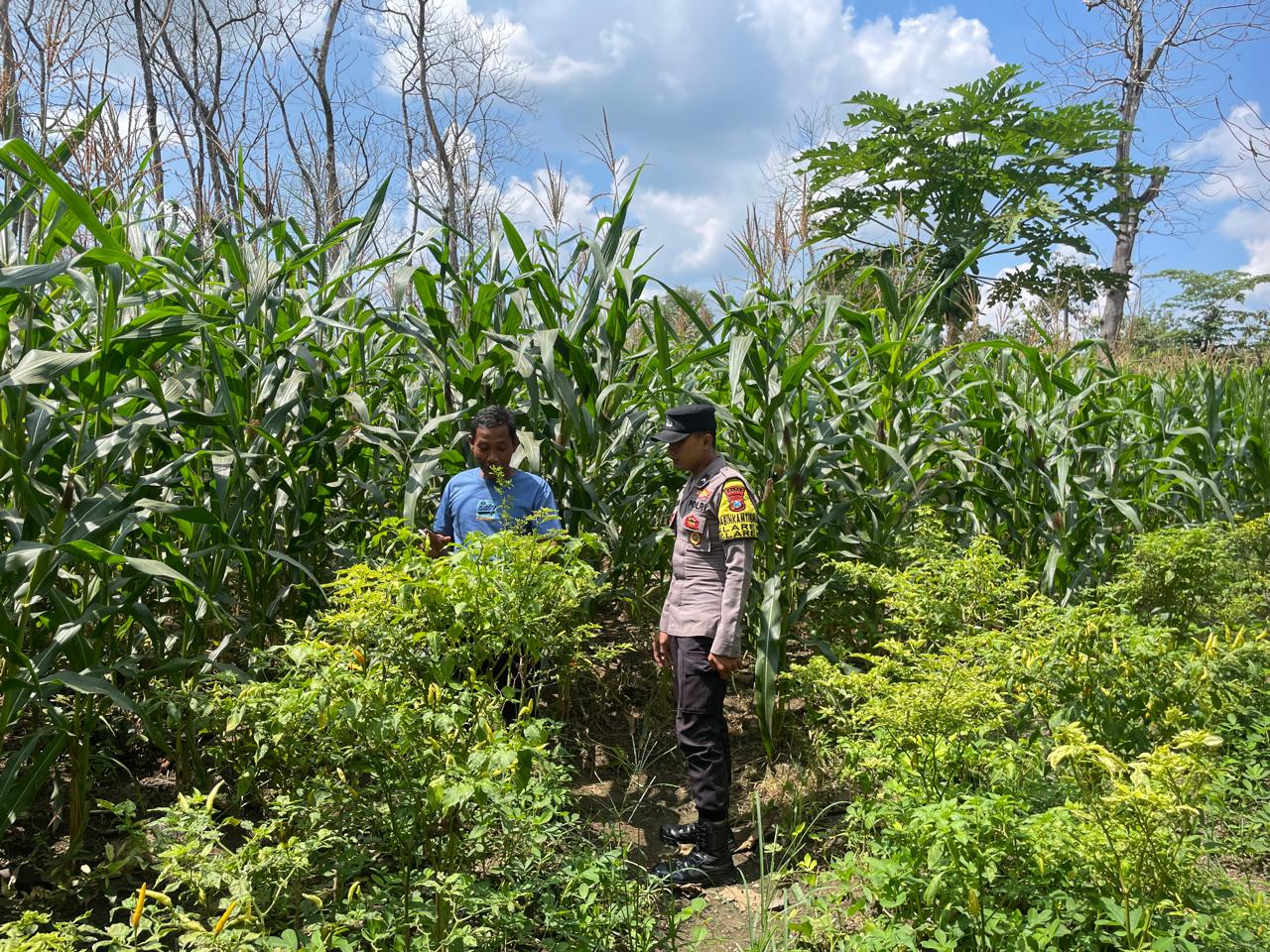 Petugas yang terlibat adalah Aiptu Hamid dan Bripda Mirza. Dalam kegiatan ini, pihak kepolisian bekerja sama dengan petani untuk memeriksa kondisi tanaman, memastikan tumbuhan jagung dan cabe tumbuh dengan baik, serta mengidentifikasi kendala apa saja yang dihadapi selama proses budidaya.