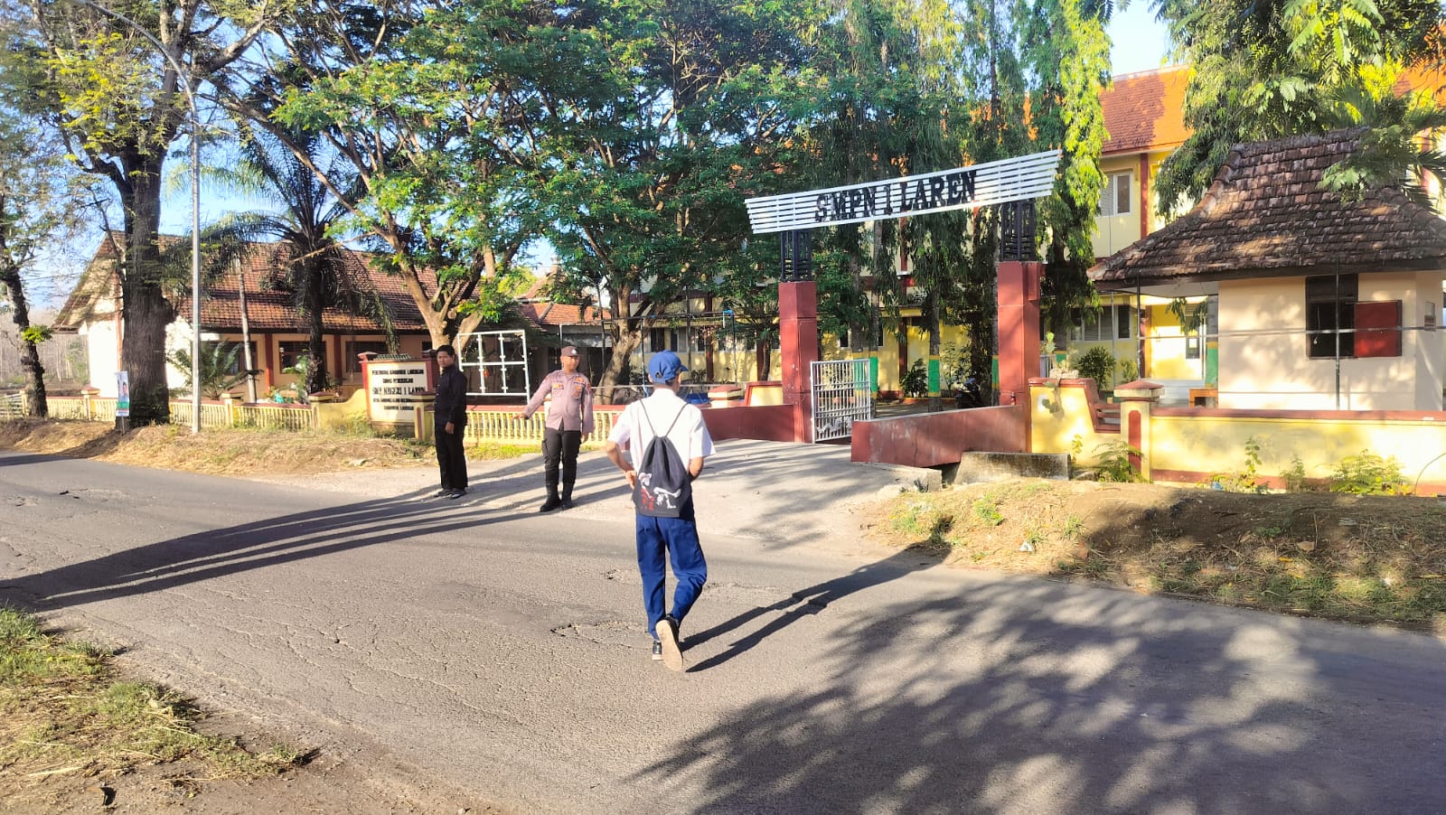Polsek Laren Gelar Giat Commander Wish Pagi, Amankan Lalu Lintas di Depan SMPN 1 Laren