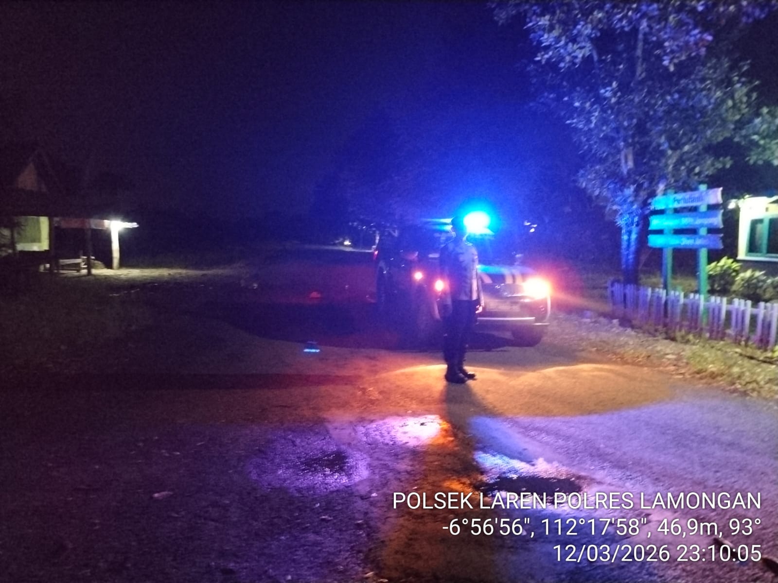 Informasiindo.com//LAMONGAN – Petugas Polsek Laren melaksanakan kegiatan Patroli Blue Light untuk antisipasi gangguan keamanan dan ketertiban masyarakat (Kamtibmas) pada Hari Kamis, 12 Maret 2026. Kegiatan yang dimulai pukul 22.00 WIB hingga selesai dilakukan oleh Aipda Tri dan Bripda Ilham, dengan fokus pada lokasi Simpang 3 Pantangan.