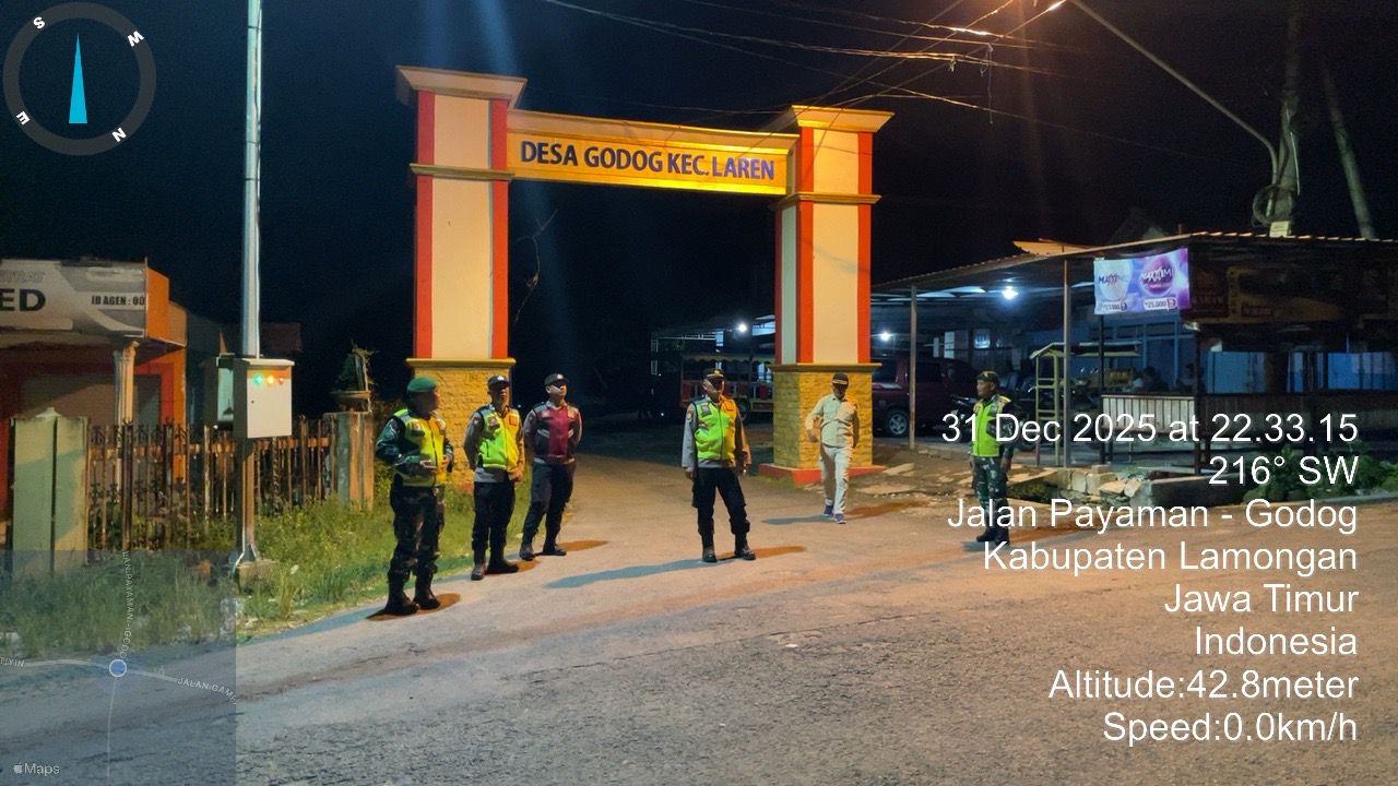 Informasiindo.com//LAMONGAN – Polsek Laren bersama unsur Forkopimcam melaksanakan patroli Blue Light sebagai upaya antisipasi keamanan selama malam pergantian tahun 2025 menuju 2026. Kegiatan berlangsung pada hari Rabu (31/12) pukul 22.30 WIB di Simpang Empat Desa Godog.