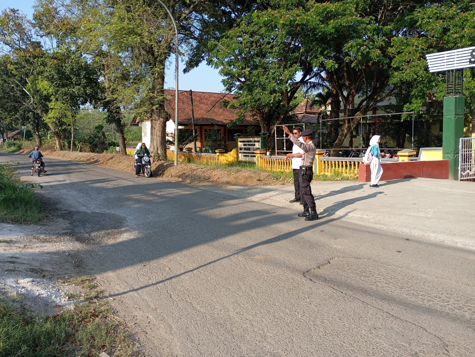 Petugas yang melaksanakan giat tersebut adalah Aiptu Wahyudin dan Bripda Ach. Tomi. Sasaran kegiatan difokuskan pada area depan sekolah, yang merupakan bagian dari Jalan Raya Gampang.
