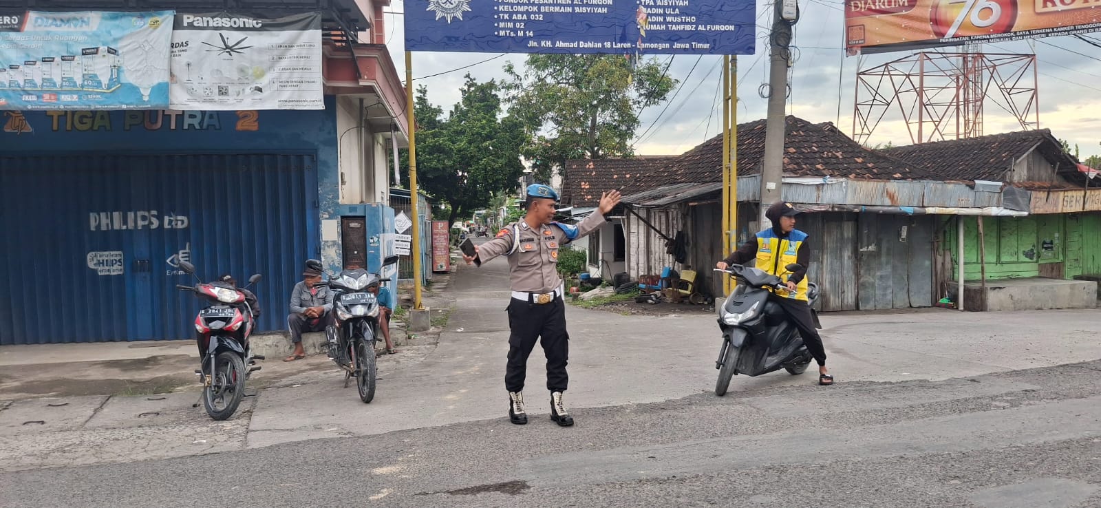 Informasiindo.com//LAMONGAN – Sebagai upaya menjaga kelancaran lalu lintas pada jam sibuk pagi, Petugas Polsek Laren telah melaksanakan kegiatan Pengaturan Lalu Lintas (CW) di Simpang 5 Pasar Laren, Senin (12/1/2026) pagi. Kegiatan yang dimulai pukul 06.30 WIB tersebut dijalankan oleh dua petugas yaitu Bripka Maslikhan dan Bripda Ilham.
