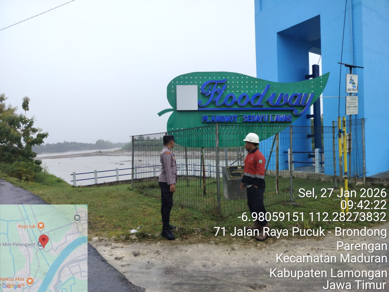 Kegiatan ini diperankan oleh dua petugas yaitu Aiptu Wahyudin dan Aipda Andri Dwi W, dengan fokus lokasi di Floodway Plangwot. Pemeriksaan dilakukan mulai sekitar pukul 09.43 WIB hingga selesai.