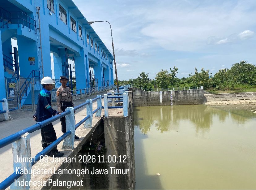 Informasiindo.com//LAMONGAN – Polsek Laren Polres Lamongan melaksanakan patroli pengecekan dan monitoring ketinggian permukaan air Sungai Bengawan Solo pada hari Jumat (9/1/2026) pukul 10.30 WIB hingga selesai di lokasi Floodway Plangwot.