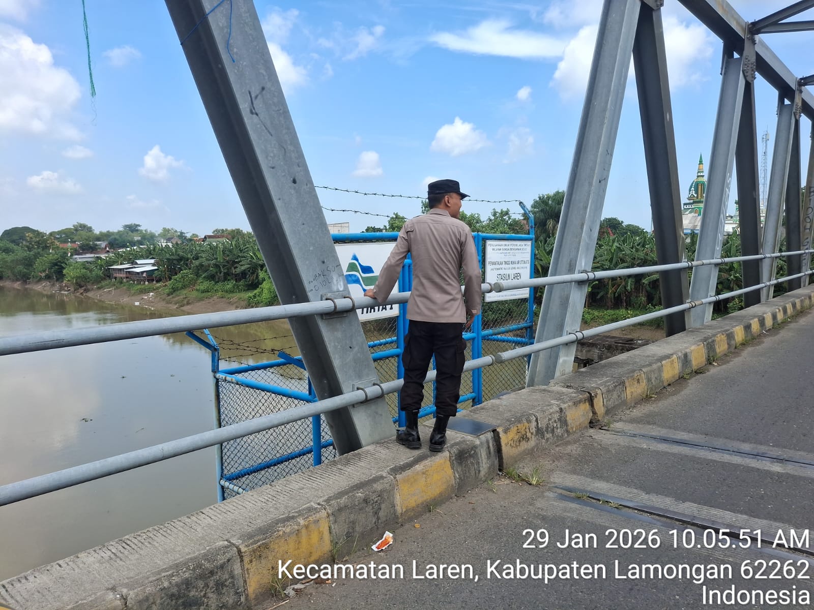 Informasiindo.com//LAMONGAN – Polsek Laren Polres Lamongan melaksanakan patroli pengecekan dan monitoring ketinggian permukaan air Sungai Bengawan Solo pada hari Kamis (29/1). Kegiatan yang bertujuan untuk antisipasi potensi bencana banjir tersebut dilakukan di Pos Pantau Jembatan Laren oleh dua petugas yaitu Aipda Tri dan Bripda Ilham, mulai pukul 10.00 WIB.
