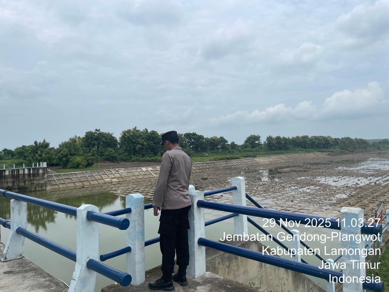 Pada hari Sabtu, 29 November 2025, Aiptu Shaffan dan Bripda Mirza melaksanakan patroli di Floodway Plangwot. Hasil pemantauan menunjukkan ketinggian air Bengawan Solo berada pada titik 2.0 meter.