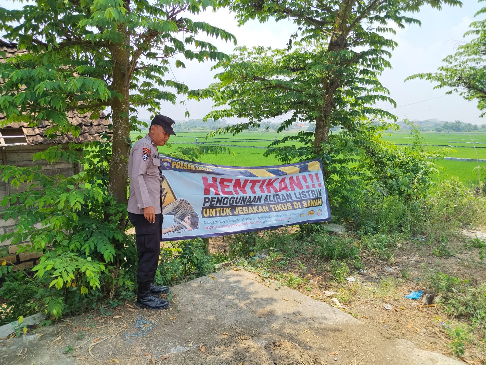 Banner yang dipasang bertujuan untuk mengingatkan masyarakat agar tidak menggunakan aliran listrik di sawah sebagai jebakan atau penghalang hama tikus. Praktik tersebut berpotensi membahayakan keselamatan warga atau orang yang melintas di sekitar persawahan.