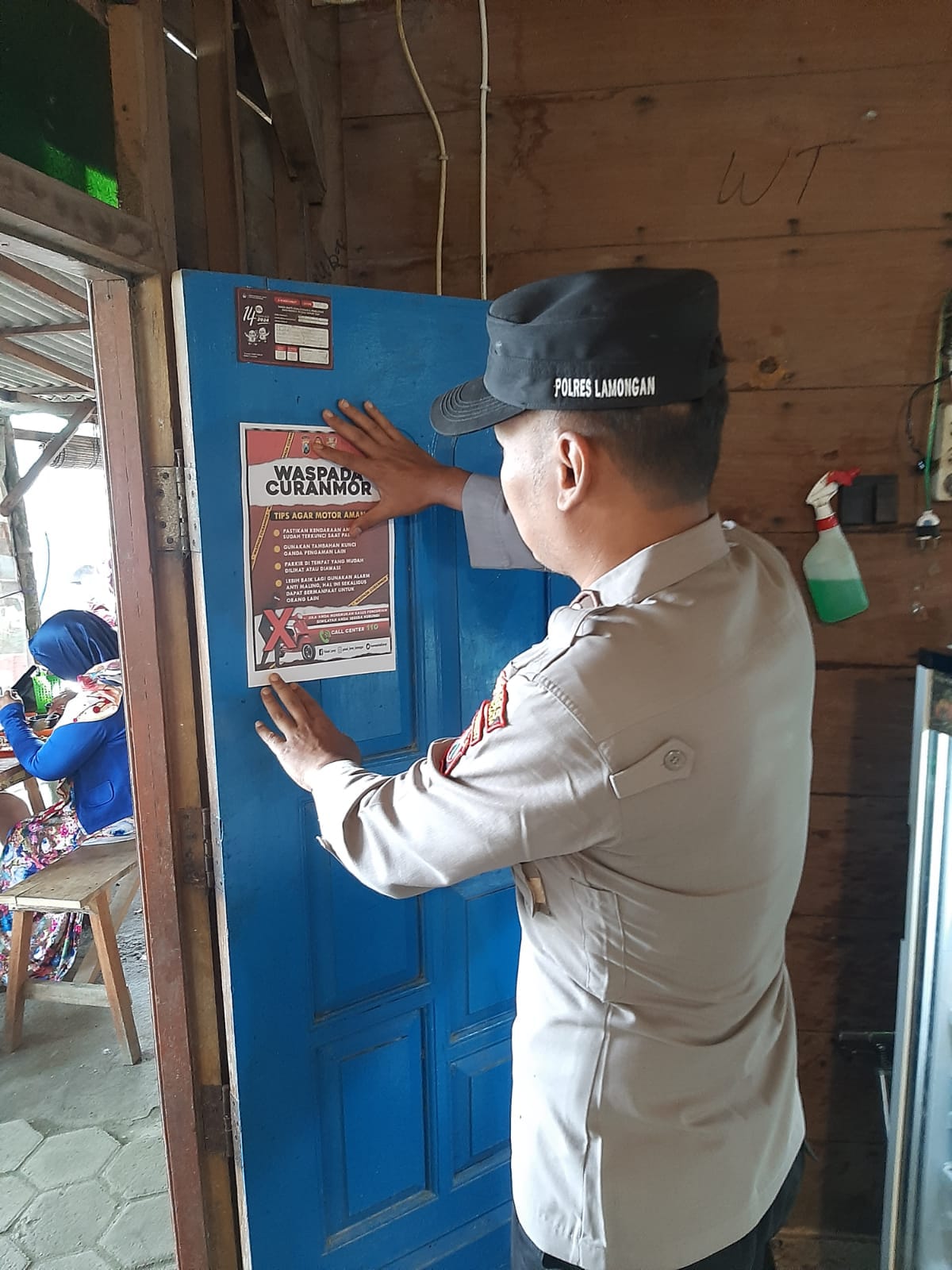 Polsek Laren Pasang Pamflet Himbauan, Waspadai Kejahatan Curanmor di Wilayah Laren