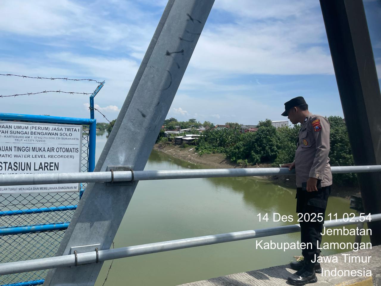 Informasiindo.com//LAMONGAN – Polsek Laren, Polres Lamongan, telah melaksanakan patroli pengecekan dan monitoring ketinggian permukaan air Sungai Bengawan Solo di wilayah hukumnya pada hari Minggu (14/12) pukul 11.00 WIB s/d selesai. Kegiatan dipimpin oleh Aiptu Shaffan dan Bripda Mirza, berlangsung di Jembatan Laren.