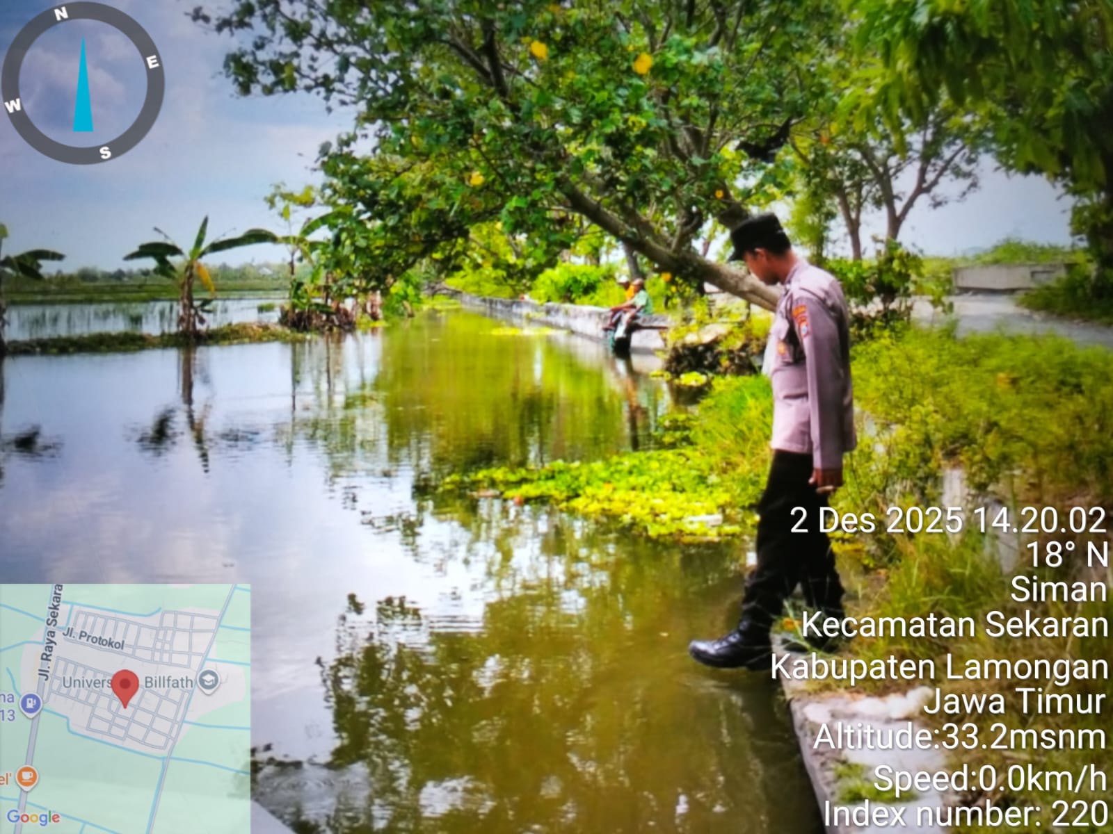 Kapolsek Sekaran, Iptu Ahmad Zunaidi, S.IP, memimpin langsung patroli yang melibatkan Ps. Kanit Samapta dan petugas jaga. Dalam kegiatan tersebut, mereka memantau ketinggian air sungai serta pintu-pintu air di wilayah Kecamatan Sekaran, guna memastikan kesiapsiagaan menghadapi potensi banjir saat musim penghujan.