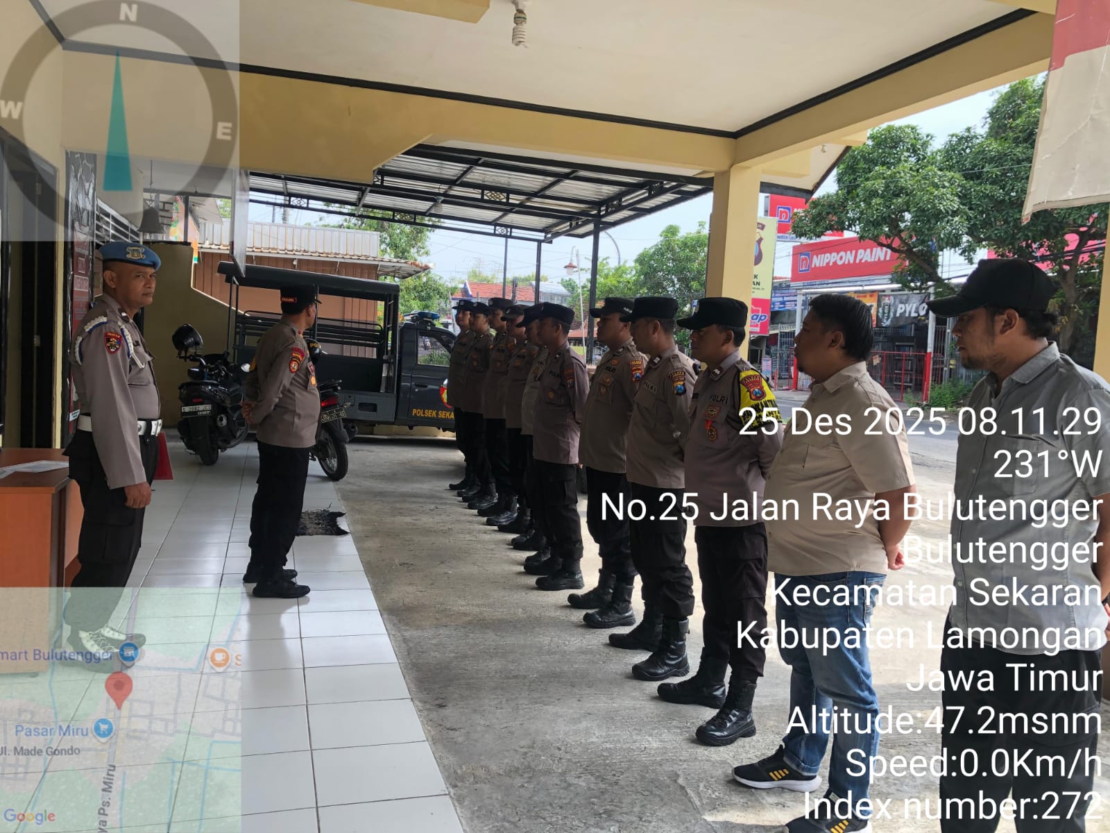 Informasiindo.com//LAMONGAN – Polsek Sekaran melaksanakan apel siaga dalam rangka perayaan Natal tahun 2025 pada hari Kamis (25/12/2025) sekitar pukul 08.00 WIB, bertempat di halaman Mako Polsek Sekaran. Kegiatan ini diikuti oleh sebanyak 10 personil anggota polisi.