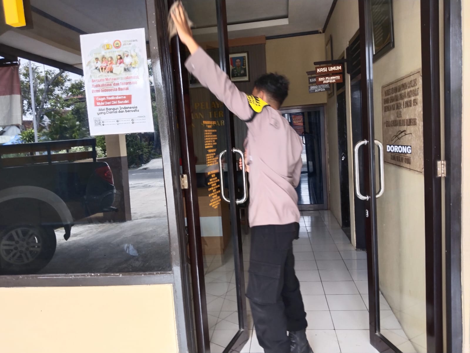 Kegiatan ini dilaksanakan oleh tiga petugas yaitu Aiptu Sukiyat, Aiptu Sofyan, dan Briptu Firnanda. Selain menjalankan tugas penjagaan keamanan mako secara terus-menerus, mereka juga melakukan pembersihan ruangan dan area sekitar markas untuk menjaga kondisi lingkungan kerja yang nyaman dan kondusif.