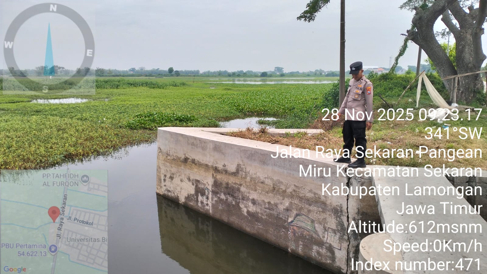 Patroli menyasar pemukiman masyarakat, area rawa, serta aliran anak Sungai Bengawan Solo di Kecamatan Sekaran. Petugas yang terdiri dari Ps. Kanit Samapta dan petugas jaga, memantau ketinggian air Bengawan Solo dan saluran aliran sungai anak Bengawan Solo serta pintu-pintu air di wilayah Kecamatan Sekaran.