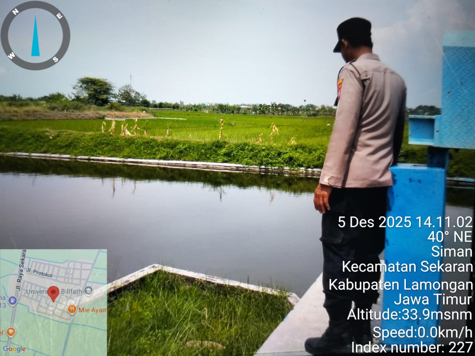 Patroli ini dipimpin oleh Penasehat (Ps.) Kanit Samapta beserta petugas jaga Polsek Sekaran. Selama berjalan, tim patroli melakukan pemantauan terhadap ketinggian air Bengawan, saluran aliran sungai anaknya, serta pintu-pintu air di wilayah Kecamatan Sekaran – langkah penting mengingat musim hujan yang tengah berlangsung.