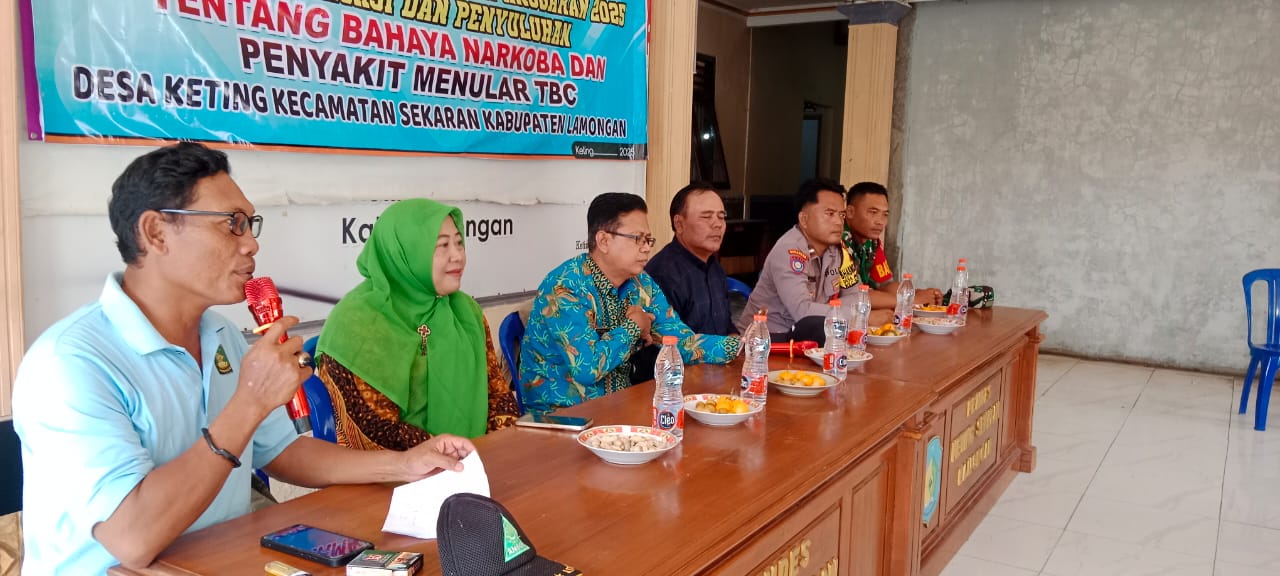 Informasiindo.com//LAMONGAN – Polsek Sekaran menggelar kegiatan sosialisasi dan penyuluhan tentang pencegahan bahaya narkoba dan penyakit menular TBC di Balai Desa Keting, Kecamatan Sekaran.