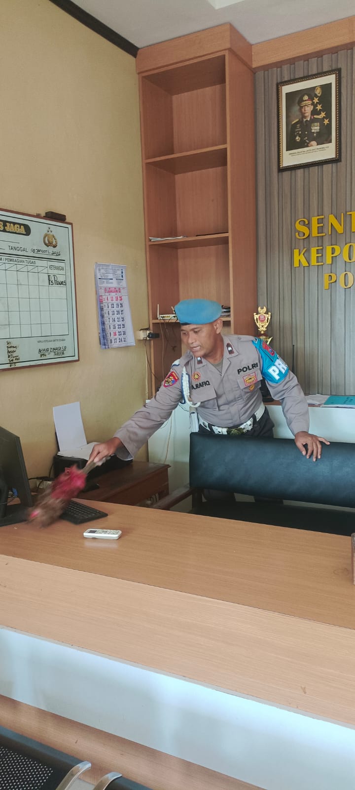 Kegiatan yang dilakukan mencakup beberapa poin penting, antara lain penjagaan di ruang penjagaan dan ruang pelayanan masyarakat, pembersihan lingkungan Mapolsek, pemeriksaan serta pemeliharaan kendaraan dinas, dan pengecekan kondisi senjata api yang ada di Polsek.