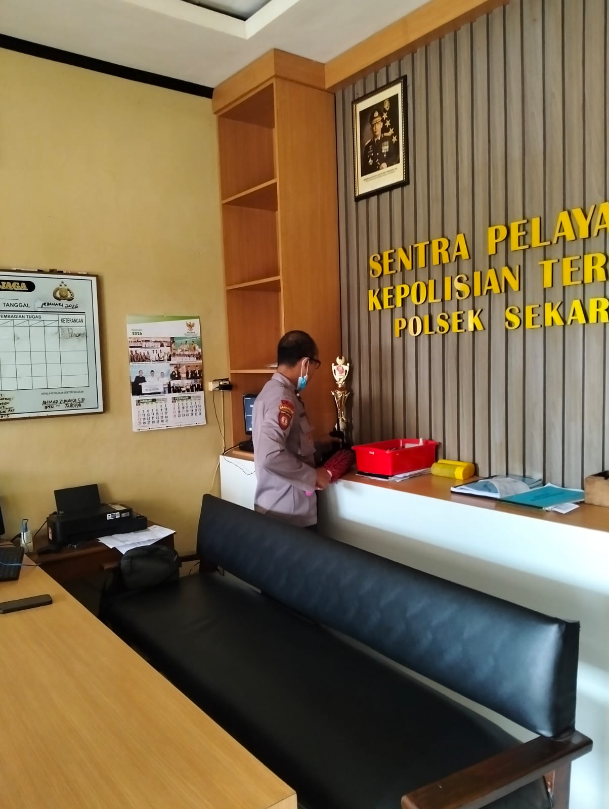 Informasiindo.com//LAMONGAN – Polsek Sekaran melakukan kegiatan kesiapsiagaan petugas jaga yang mencakup penjagaan markas serta pemeliharaan kebersihan di Mapolsek Sekaran. Kegiatan ini berlangsung pada hari Sabtu, 07 Maret 2026 mulai pukul 07.30 WIB hingga selesai.