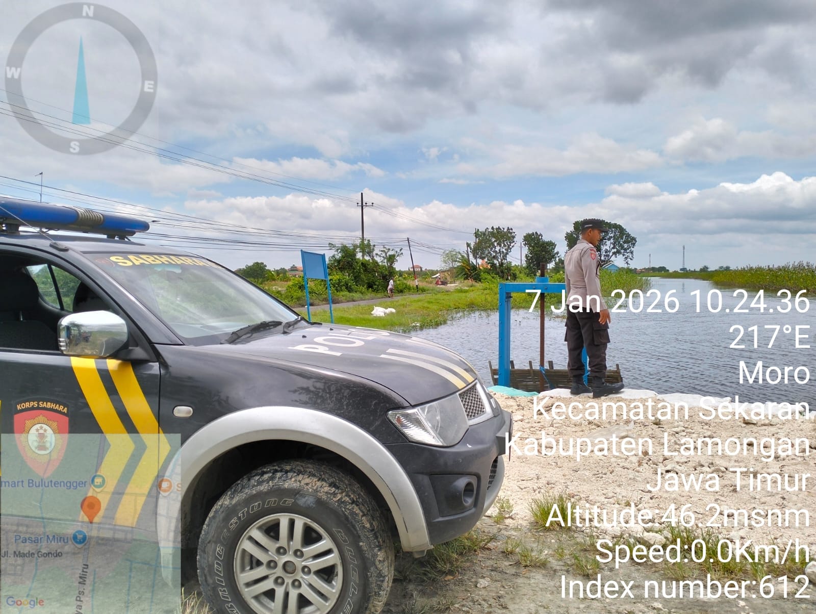 Kegiatan dilakukan oleh Kanit Samapta beserta petugas jaga, dengan cakupan wilayah pemukiman masyarakat, area rawa, serta aliran anak sungai Bengawan Solo di Kecamatan Sekaran. Petugas memantau ketinggian air Bengawan Solo, saluran aliran anak sungainya, serta pintu-pintu air di wilayah tersebut.