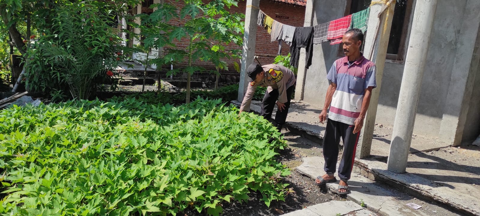 Kegiatan monitoring diikuti oleh dua petugas, yaitu Aipda Priyanto, S.H. dan Briptu Moh Farid. Pemeriksaan difokuskan pada tanaman cabe, tomat, dan terong yang ditanam warga di lahan pekarangan tersebut.
