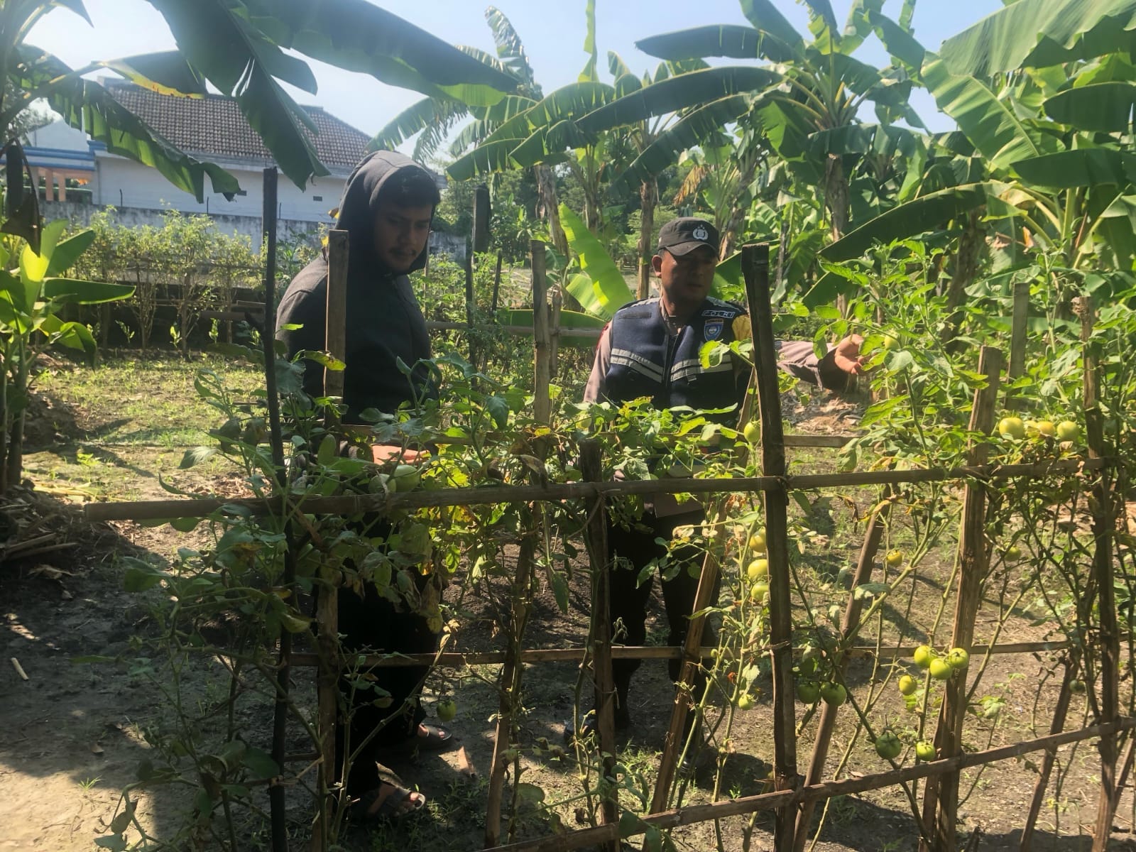 Personel yang terlibat adalah Aipda Priyanto, S.H., dan Briptu Moch Fernanda dalam kapasitasnya sebagai Polisi Masyarakat (Polmas)/Bhabinkamtibmas. Mereka melakukan pemeriksaan dan pemantauan kondisi tanaman pangan yang ditanam, antara lain cabai, tomat, dan terong.