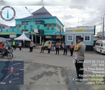 Informasiindo.com//LAMONGAN – Pospam Pasar Babat melaksanakan pengaturan arus lalu lintas dalam rangka Operasi Lilin Semeru 2025 pada hari Sabtu (27/12/2025) pukul 08.15 WIB hingga selesai, bertempat di seputaran Tugu Wingko depan Pospam Pasar Babat.