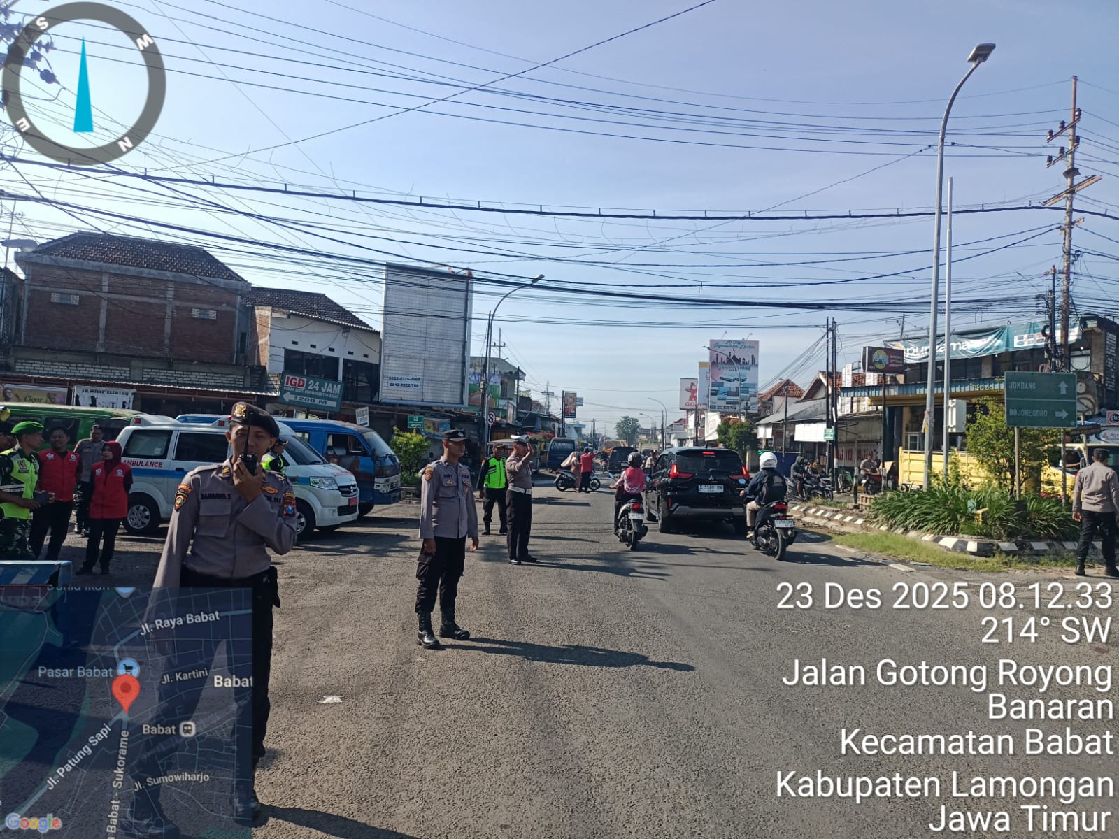 Informasiindo.com//LAMONGAN – Segera setelah apel serah terima tugas, Pospam Pasar Babat melaksanakan pengaturan arus lalu lintas pagi dalam rangka Operasi Lilin Semeru 2025 pada hari Selasa (23/12/2025) pukul 08.15 WIB s/d selesai. Kegiatan dilakukan di seputaran Tugu Wingko depan Pospam Pasar Babat.