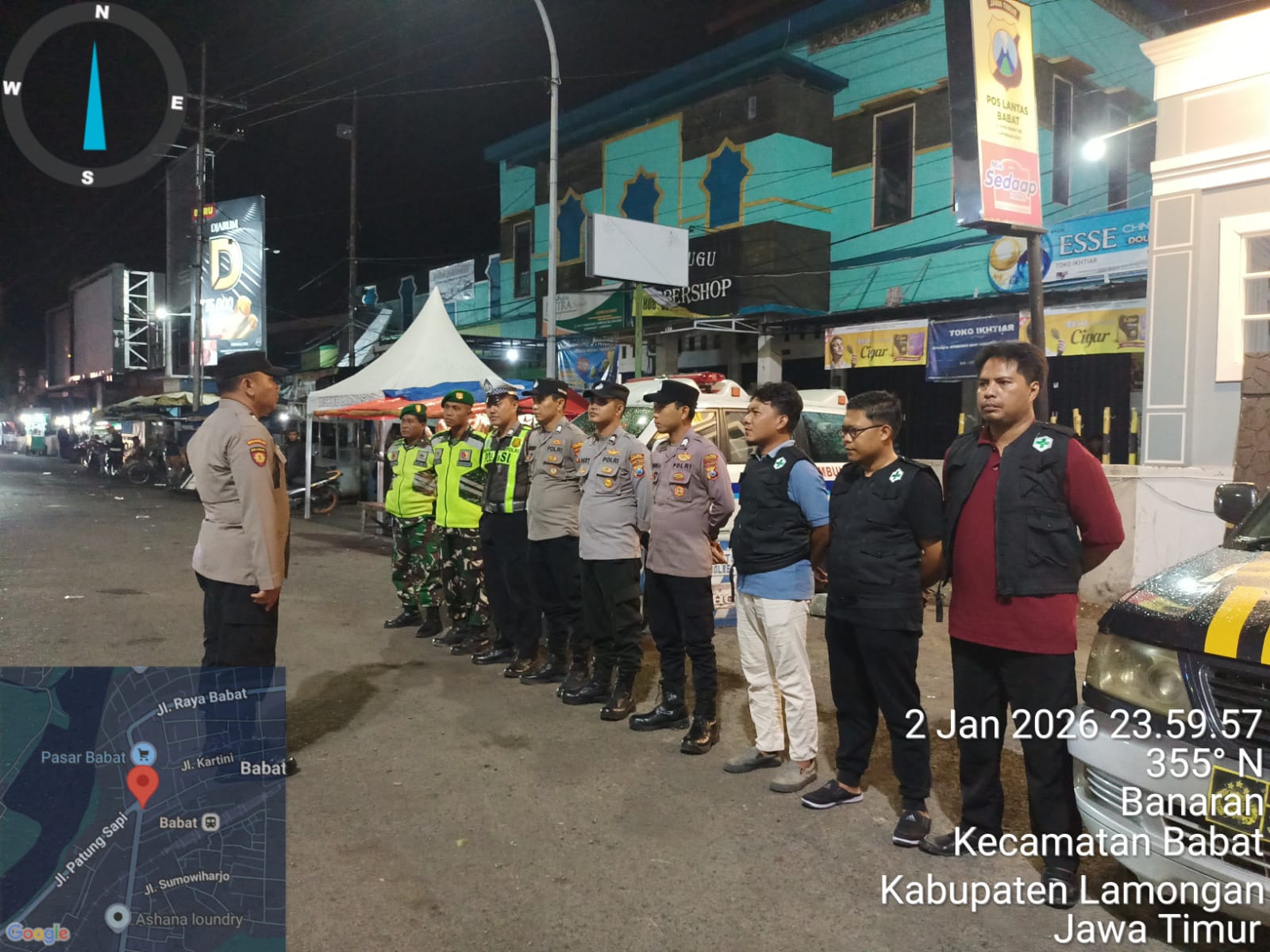 Informasiindo.com//LAMONGAN – Pos Pengamanan (Pospam) Pasar Babat telah melaksanakan apel konsolidasi tugas untuk mendukung Operasi Lilin Semeru 2026. Kegiatan yang dipimpin oleh Kapospam Pasar Babat Kompol Chakim Amrullah, SH, MH berlangsung pada hari Sabtu (03/01/2026) sekitar pukul 00.05 WIB di lokasi Pospam Pasar Babat.