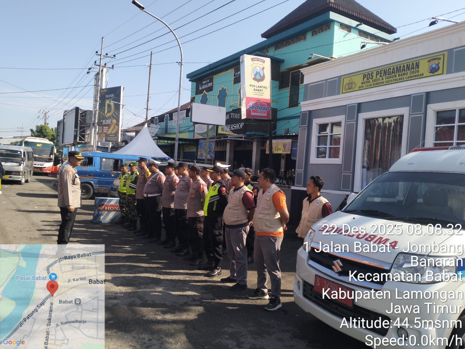 Informasiindo.com//LAMONGAN – Pospam Pasar Babat melaksanakan apel serah terima tugas jaga pospam dalam rangka Operasi (Ops) Lilin Semeru 2025 pada hari Senin (22/12) pukul 08.00 WIB hingga 20.00 WIB di lokasi Pospam Pasar Babat. Kegiatan ini dipimpin oleh Kompol Chakim Amrullah, S.H., M.H. yang juga menjabat Kapolsek Babat.