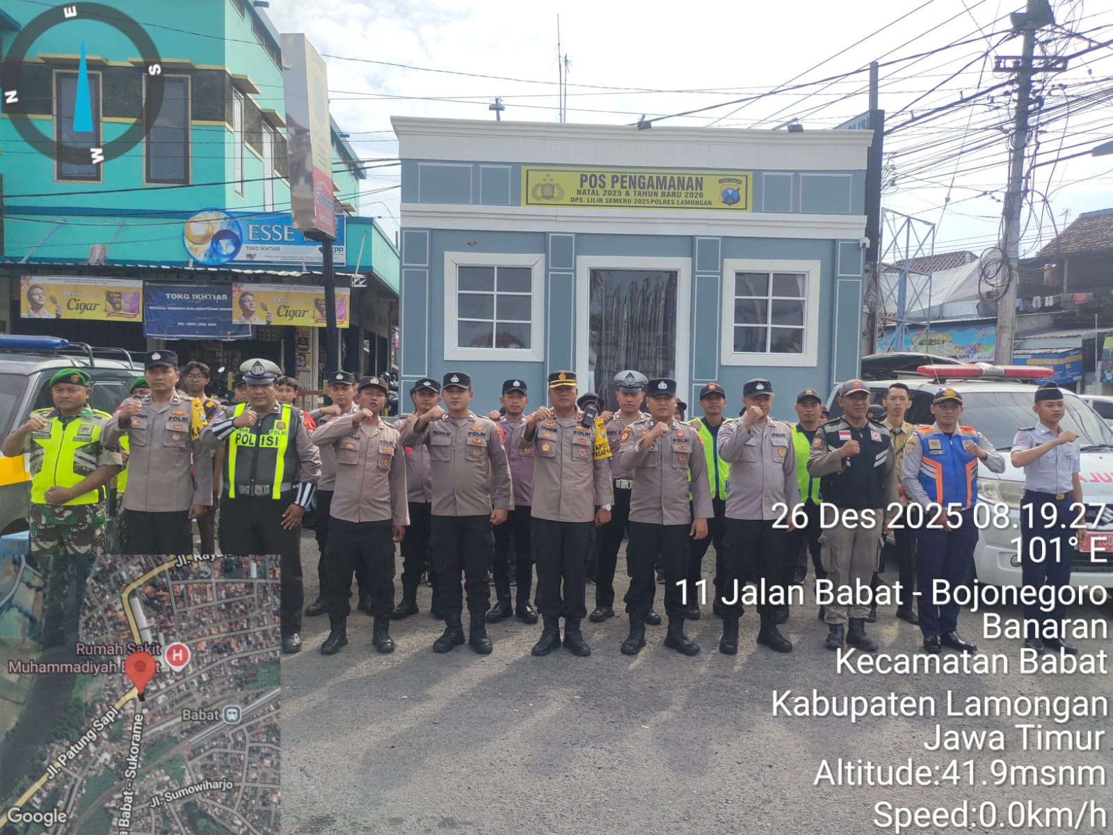 Informasiindo.com//LANONGAN – Pospam Pasar Babat melaksanakan apel serah terima tugas pengamanan dalam rangka Operasi Lilin Semeru 2025 pada hari Jumat (26/12/2025) pukul 08.00 WIB di lokasi Pospam Pasar Babat. Kegiatan ini dipimpin langsung oleh Kapospam Pasar Babat sekaligus Kapolsek Babat, Kompol Chakim Amrullah, S.H., M.H.